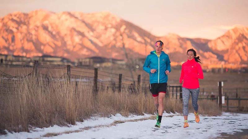 冬天跑步最里面应该穿长袖的排汗T恤,再加一件抓绒或紧身衣,进行保暖。在外面还可以加上一件软壳或硬壳夹克,能够防风、防雨雪。如果气温极其寒冷或者风特别大,可以配上帽子、面罩、脖套、手套。