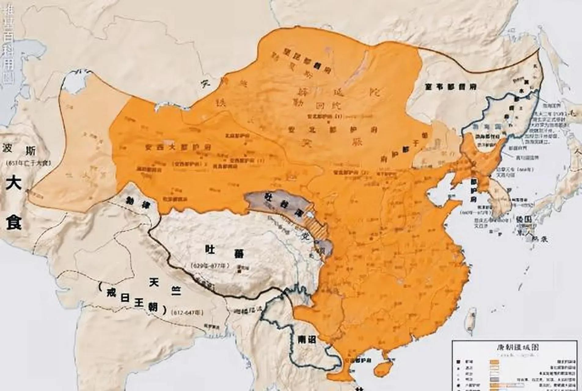 • 唐朝盛世:唐朝在隋朝的基础上进一步扩展疆域,尤其是在唐太宗和唐玄宗时期,疆域达到了极盛,东至朝鲜半岛,西至中亚,南至安南,北至蒙古高原。