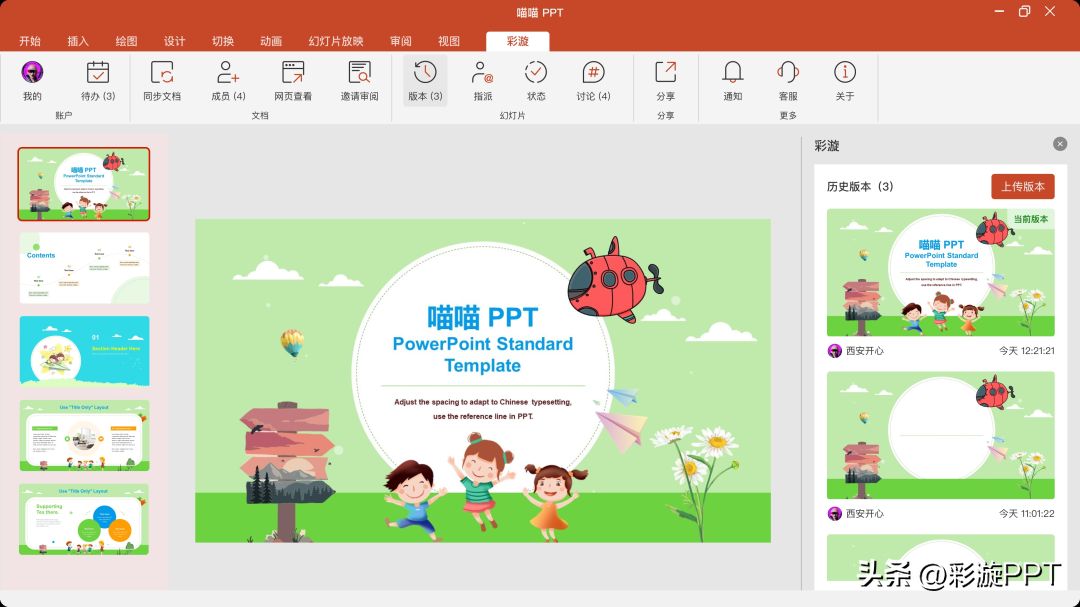 功能可以记录上传过的所有幻灯片版本,随时还原历史内容。
