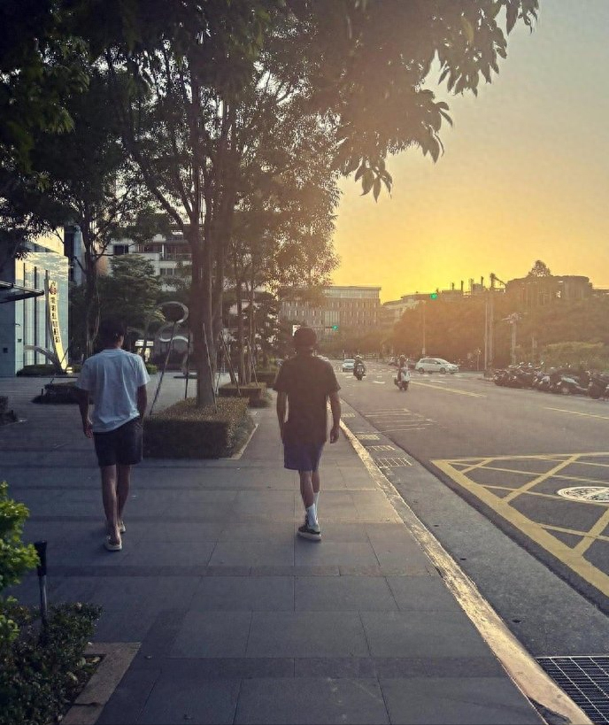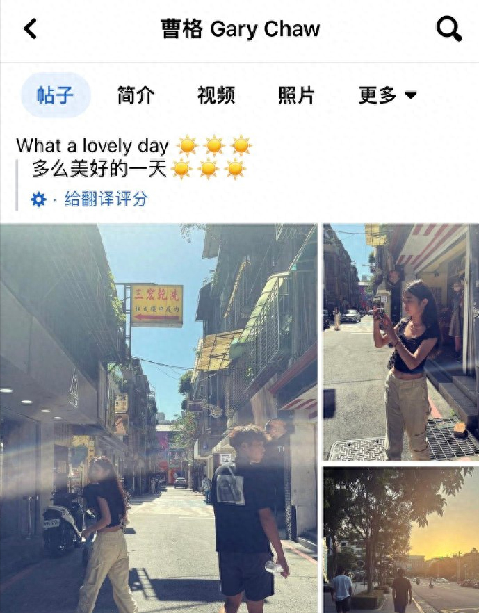 另一张照片中曹华恩被街头风景吸引拿起手机抓拍,也被曹格捕获,另一张氛围感大片则是曹格和儿子的背影,能看出儿子已经比老父亲高出很多了,夕阳西下两父子的身影竟然有一丝兄弟的感觉。