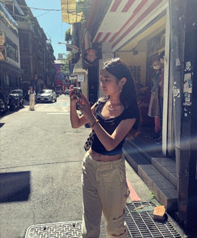 13岁的曹华恩早已成长为亭亭玉立的辣妹,Grace长发披肩,身穿露腰紧身小背心搭配拖地牛仔裤,凸显出纤细的腰身和大长腿,脖子上则戴着两圈珍珠项链,耳朵上的大耳环也十分抢镜,整体风格又酷飒又成熟。