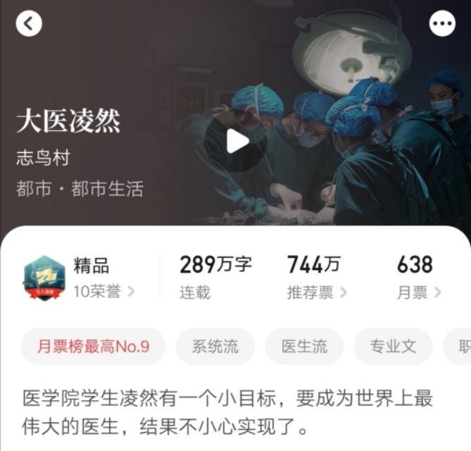 简评:医学方面的学霸文,系统流,和上面一本,同一个作者,所以此文质量上乘,有保证。作者为写这本书查找了大量医学,医院方面的资料,准备充足,书里例子的真实性较高,很多医生表示写的很好。很有资历的老作者,文笔自然不用多说,喜剧色彩很浓,各种梗,将枯燥的剧情写的很有趣。