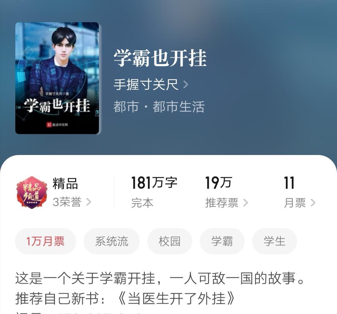 简评:我现在脑子里充斥着两个字“学霸”,当然了,看书名也知道,这又是一本学霸文,也是医学学霸,中医方面。不过该书升级了,已经从高考,高中知识进化到大学,其次主角的金手指设定比较新奇,会员系统以前也有,不过这一本的结合很完整。该作者的另外一本书在医生类小说中也很有火,《当医生开了在挂》现正更新中。