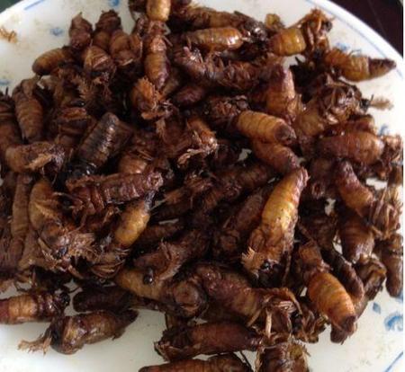 目前为止我知道的可养殖食用的虫子有:蚕蛹,蝉,蜂蛹,蝗虫,蝎子,蜈蚣(主要药用)
