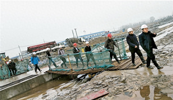 2019年1月19日下午4时,余元君在钱粮湖垸分洪闸项目工地因公殉职,46岁的生命永远留在了洞庭湖。图为余元君(右一)去世当天在工地现场检查工作时留下的最后影像。湖南省水利厅供图