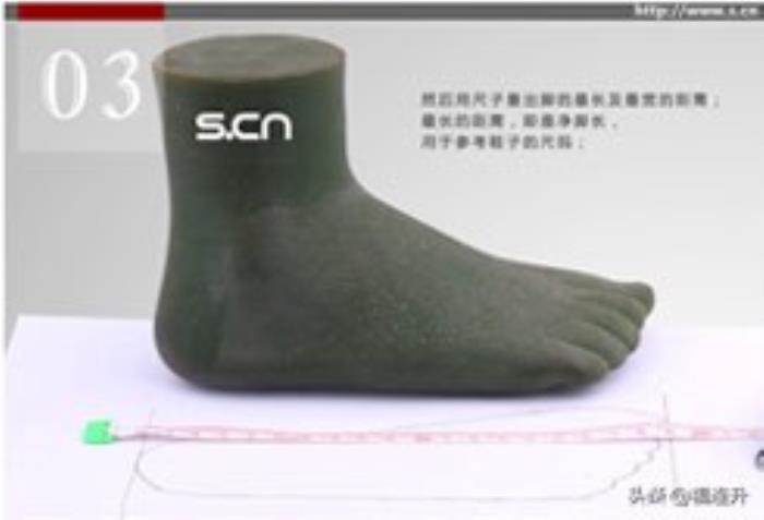 然后用尺子量出脚的最长及最宽的距离;最长的距离,即是将脚长,用于参考的尺码;
