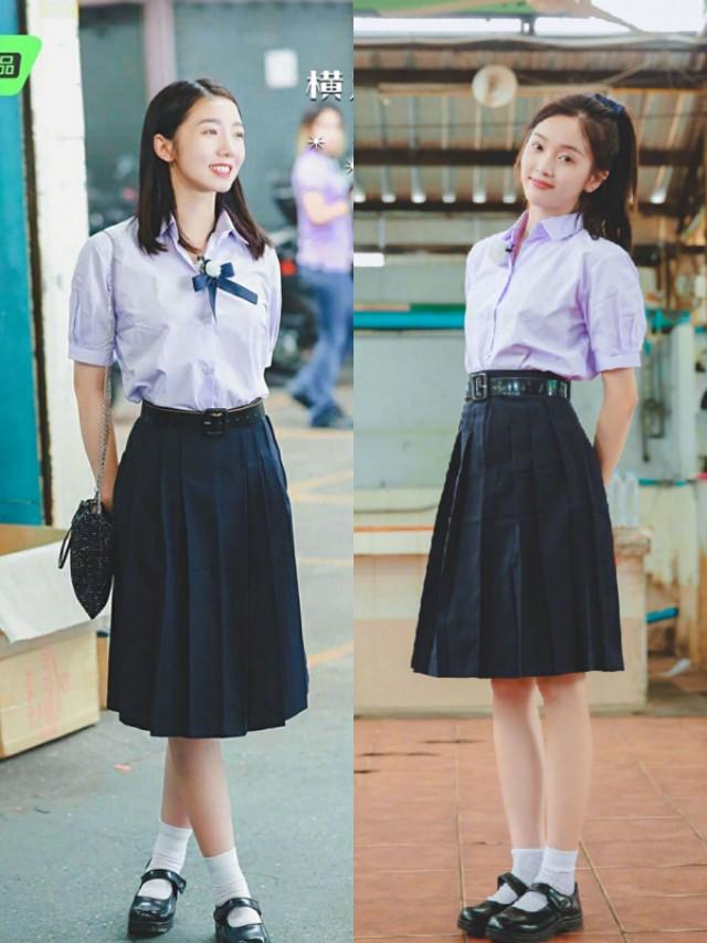 一向霸气性感的李紫婷,换上泰国校服,展现青春气息,不像jk制服和各种颜色,只要泰国校服是淡紫色的 藏蓝比黑白搭配更年轻,也没有浅色套装那么年轻,墨蓝色的稳定性和淡紫色的梦想正好调节了纯净和大方。