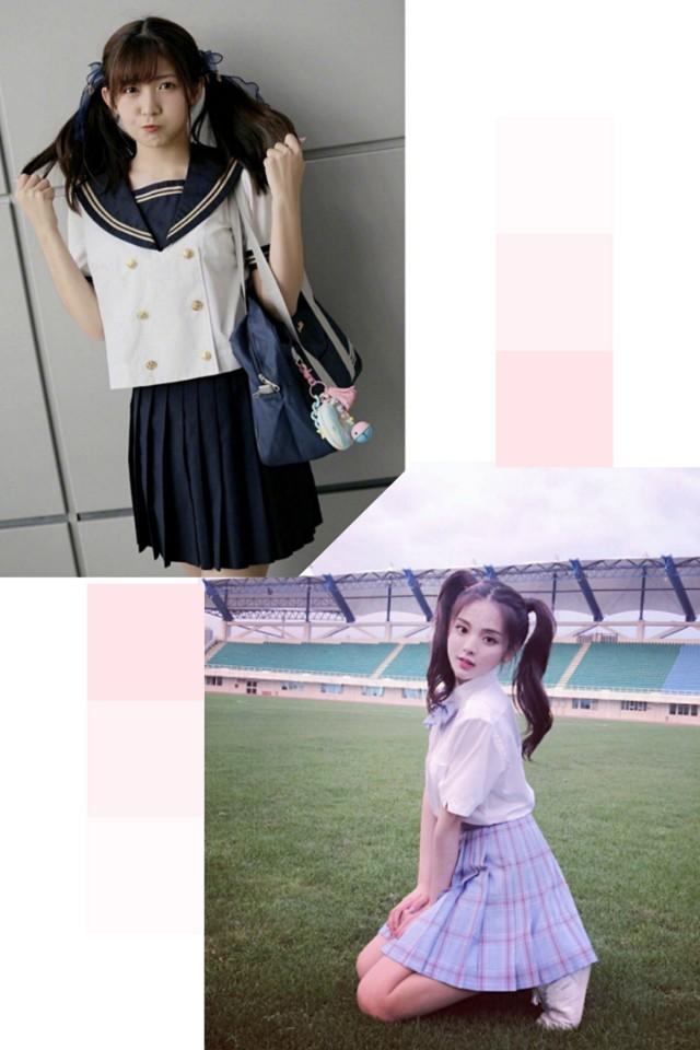 yamy更像是学校里的女生姐姐,校服掩盖不了成熟霸气,sunnee就是帅翻你的学姐。