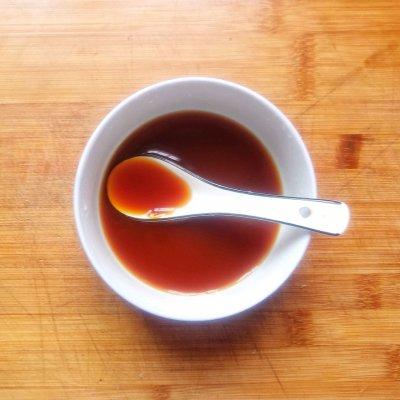 9、等菜蒸好后,我们做一下调味汁,把小半香蕉碗水、半勺淀粉、1勺生豆皮抽倒入碗内混合空气均匀