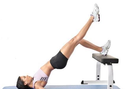 左脚的脚跟放在训练椅上,臀部在地面上。