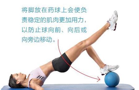 左脚放在药球上。