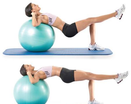 头靠瑞士球单腿臀桥