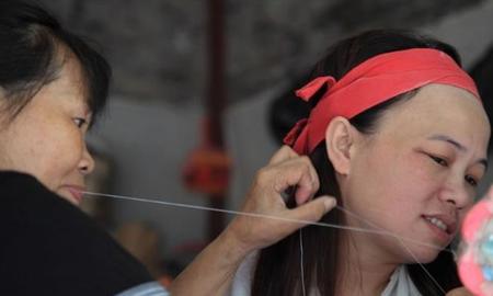 2. 2.绞 这是一种中国古老的对付面毛的方式,即两根白线通过美容院妈妈桑绕来绕去的操作在你的脸上绞掉你的面毛,疼而且可能妈妈桑操作技术不太好毛并没有完全绞干净……那种感觉很尴尬,回来还得自己剪。