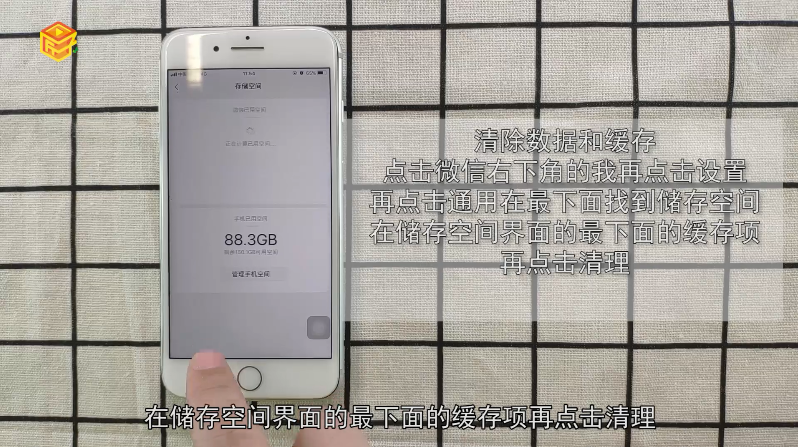 我们以我们最常用的微信为例,我们点击微信右下角的我,再点击设置。再点击通用,在最下面找到储存空间。在储存空间界面的最下面的缓存项,再点击清理。