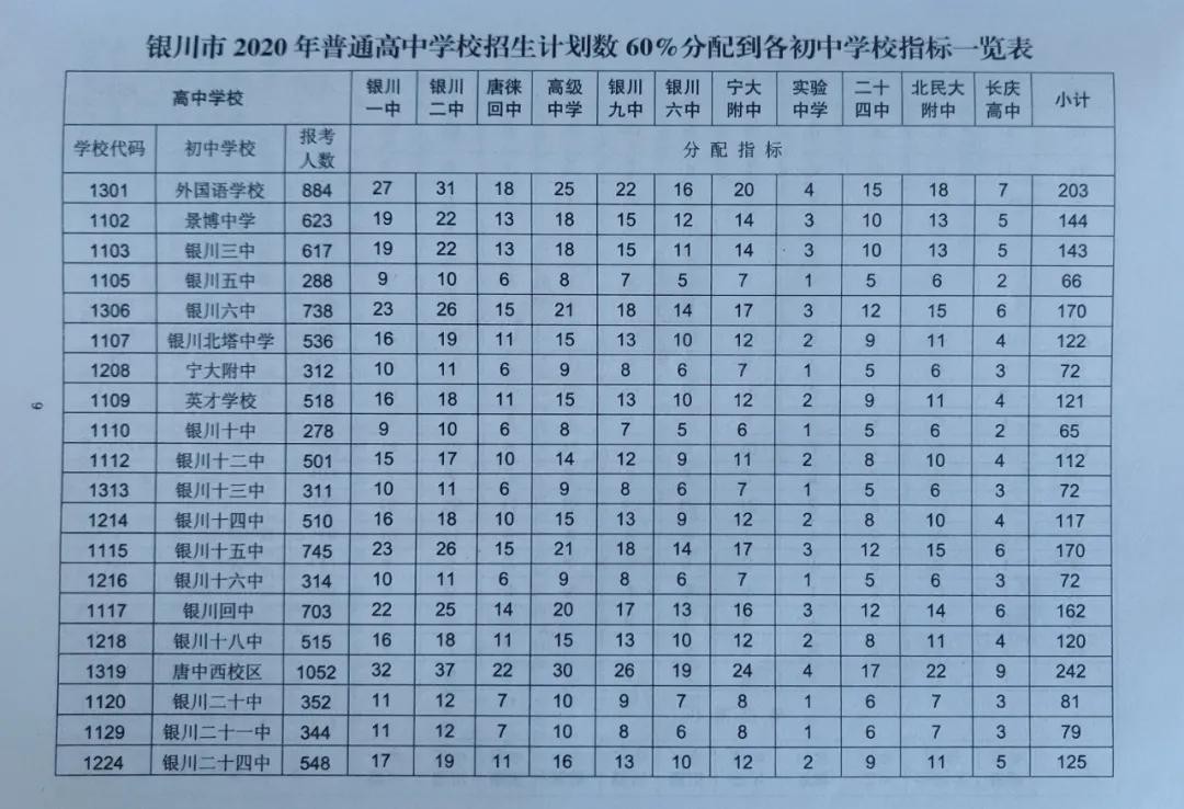 银川市中小学招生领导小组将三区高中学校统招计划数的60%依据所属初中学校的办学规模、毕业生人数以及办学质量和水平,按比例分配到三区各初中学校(含民办学校 )——这就是指标到校。
