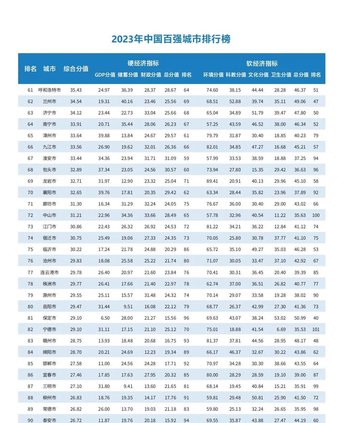 总的来说,这个城市竞争力排名的发布为我们提供了一个客观的参考,帮助我们了解各个城市的发展潜力和竞争力。