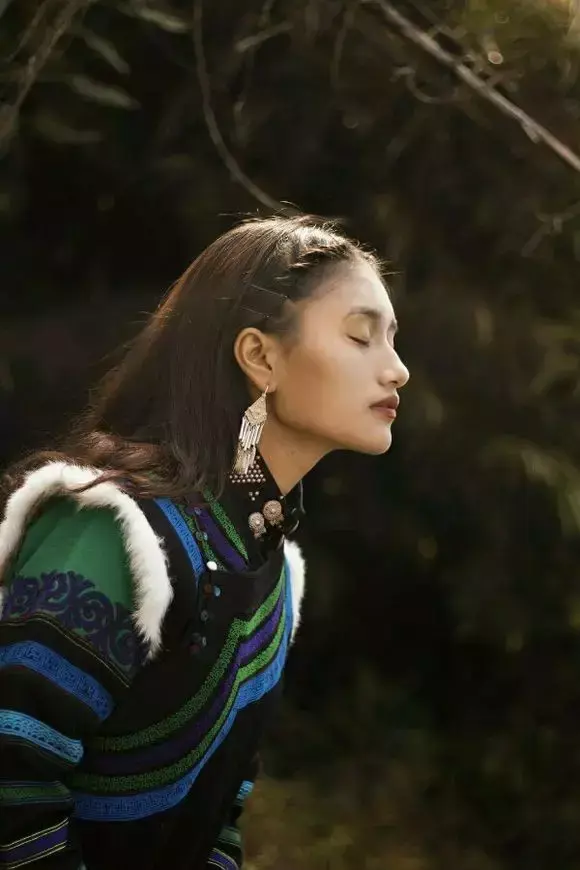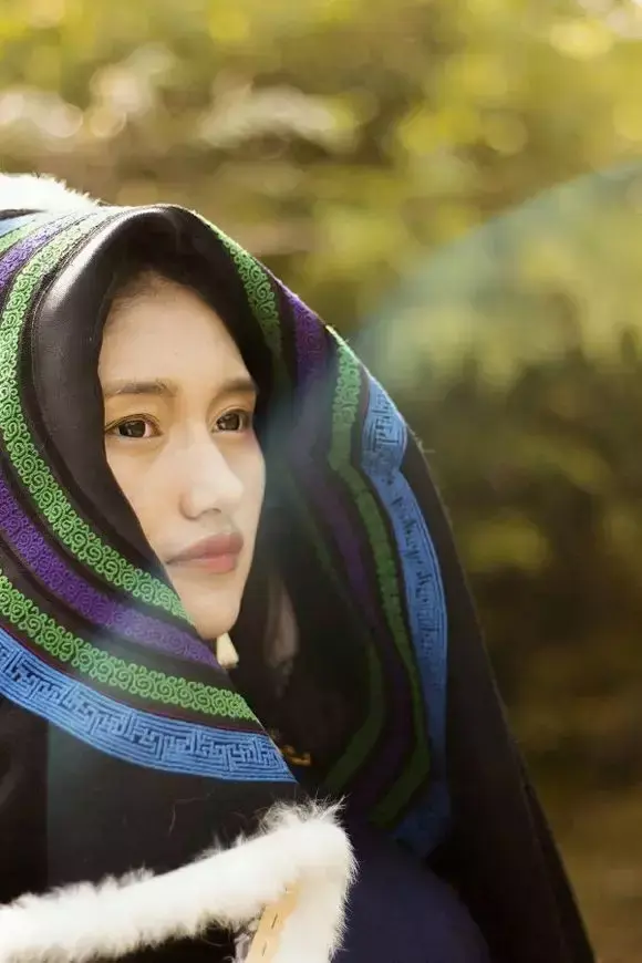 彝族美女远眺前方,傲而不骄,善良温柔。