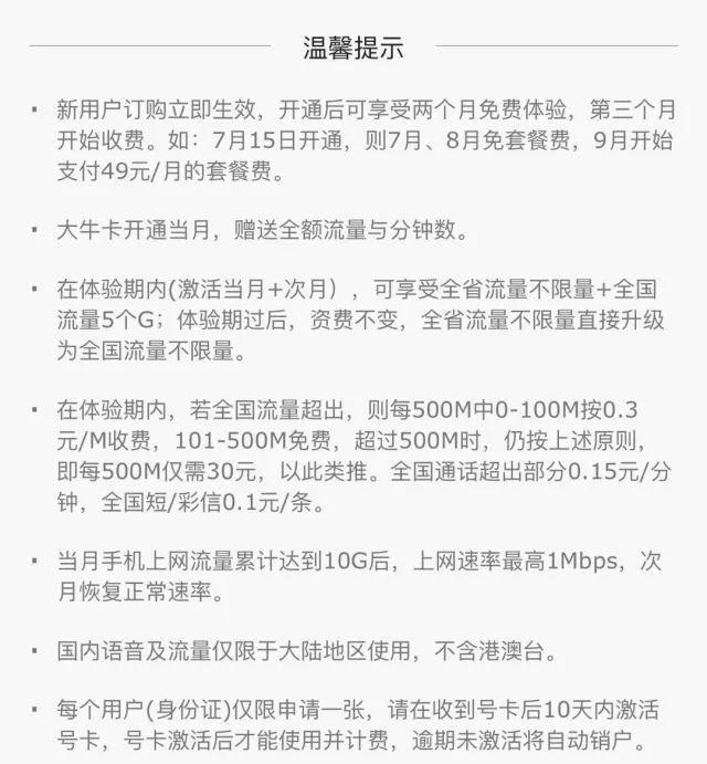 ♥每月49元=全国流量不限量+100分钟国内语音+全国接听免费