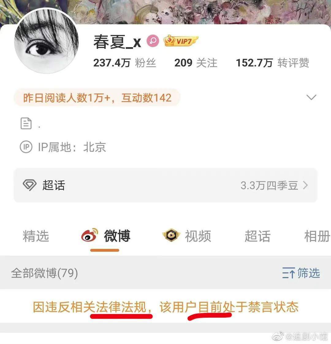 春夏微博被禁言
