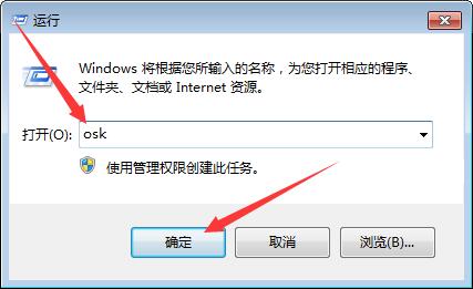 5.如果您不知道如何使用组合键关闭键盘,您也可以使用您带上操作系统的屏幕键盘关闭键盘。该方法是:开始→运行→输入:OSK单击“确定”(或按Enter)打开屏幕键盘(也称为软键盘)。