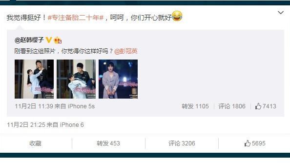 彭冠英回复赵韩樱子:“呵呵,你们开心就好 ”