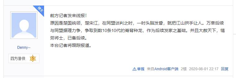 而这事经过贴吧粉丝发酵以后,楚河从此多了一个绰号,那就是楚宋江,这波操作也被粉丝戏称“大楚亡了”。