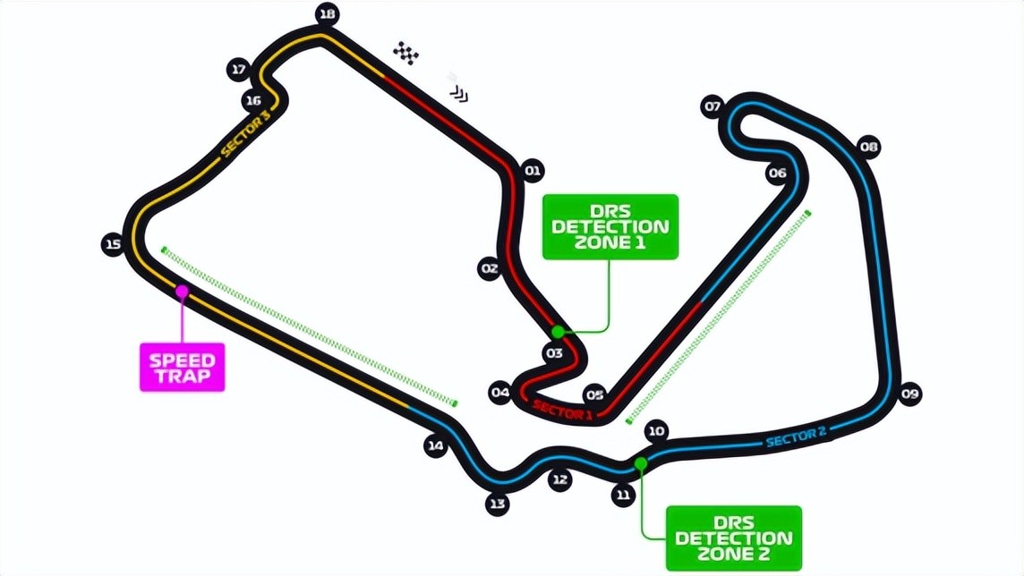 赛道全长5.891公里,拥有两个DRS区,最高尾速接近350公里,全段让平均时速近240公里小时。得益于多次的改建和宽阔的地形,赛道的宽度非常充裕,缓冲区的设置也是很宽大,这样的特点能够让车手更加肆意的去挖掘赛车的操控极限。银石赛道共拥有18个弯角,虽然弯角在整个F1中并不突出,但却是为数不多的,每一个弯角鱼都拥有自己名称的赛道,正赛一共跑52圈,全程306公里,赛道记录是由维斯塔潘创造了1分27秒097。