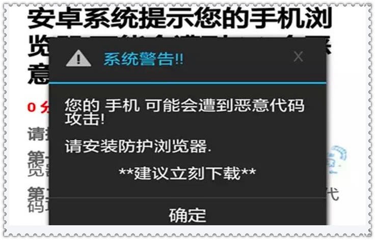 手机浏览器看网页,遭不停震动提示:手机被植入病毒,你该怎么办