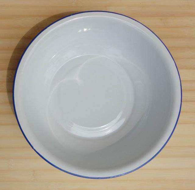 在儿时记忆里,几乎每家每户都有那么一只搪瓷盆/搪瓷碗,它们曾经是厨房的焦点,外表面呈现出鹅黄色,边沿有一圈蓝色的凸起,那时候吃饭装菜基本上都是用的这种碗。