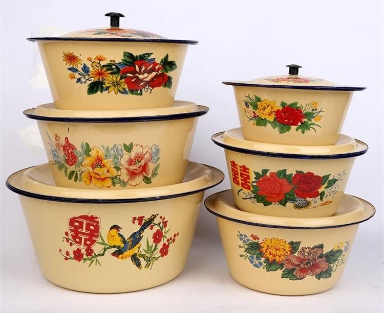 首先,相比于陶瓷碗盆,搪瓷碗盆不仅更不容易碎,而且拿放的时候更加轻盈,尤其适合老人小孩用。