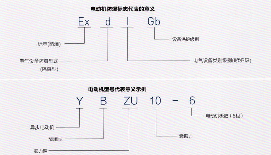 YBZU系列隔爆型振动源三相异步电动机防爆标志为ExdIMb,适用于I类含有瓦斯或煤尘的爆炸危险性场所,驱动振动机械。