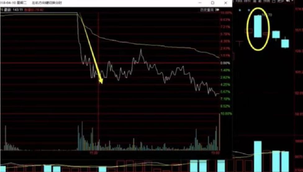 核按钮除了表示操作手法外,还可以表示股票从高位快速下跌的走势。比如万兴科技在2018年这一天从涨停直接砸到水下五点,就是一个典型的核按钮,有时候我们也直接说某只股票被核了。