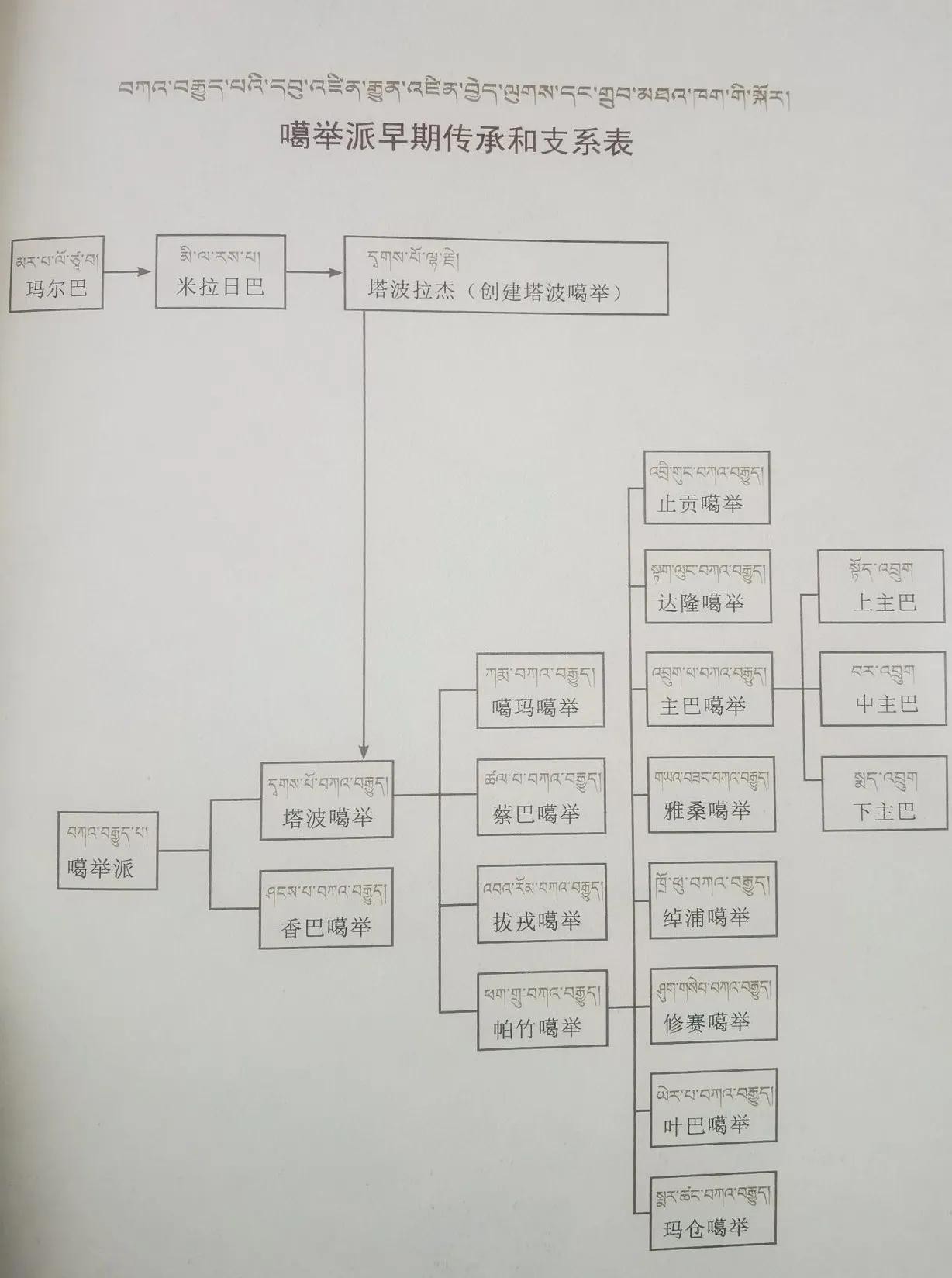 有关噶举派名称的起源据《土观宗派源流》记载,“晚近主尊的一些书中有写‘白传’的,这是因为仅考虑到玛尔巴、米拉日巴、林热巴等曾穿着白衣的缘故。实际它的名字应当是普遍流传的‘语传’二字,这一称谓较为合理,因为此派是以领受语旨教授而为传承的”。