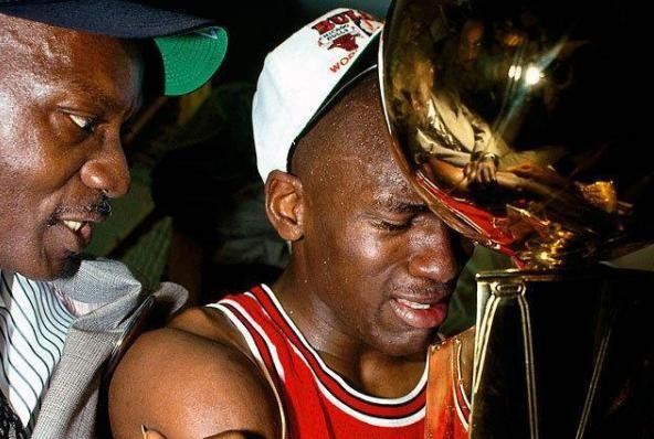 和第1次夺冠不同的是,第1年乔丹夺冠之后的失声痛哭,是因为自己终于历经6年,打破了外界对于他能否带队夺冠的质疑,也是为自己首次捧起总冠军奖杯而激动不已;但在96年,对于乔丹来说是复出之冠,乔丹本不需要证明什么,只是在此之前,乔丹经历的父亲被枪杀、为完成父亲的愿望,奔赴棒球场,期间的痛苦以及对篮球赛场的情节纠缠,很难有人去感同身受。