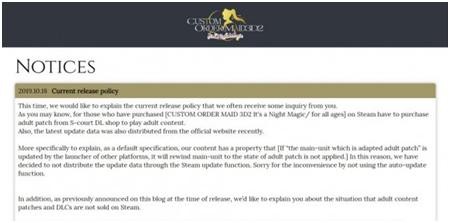 不过即使玩家通过官方成人补丁修改了《3D定制女仆2》,Steam的更新机制仍然会强制性地把你的游戏状态恢复到之前,所以基本没什么用处。因此制作方也不再执着于在Steam平台上更新补丁,并且表示之后的DLC和更新都会通过S-court DL来发布。