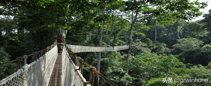 距离地面36米的高空鸟瞰万顷热带雨林。Experience the distance on the surface of the 36 meters high altitude