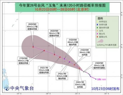 今年第26号台风“玉兔”未来120小时路径概率预报图