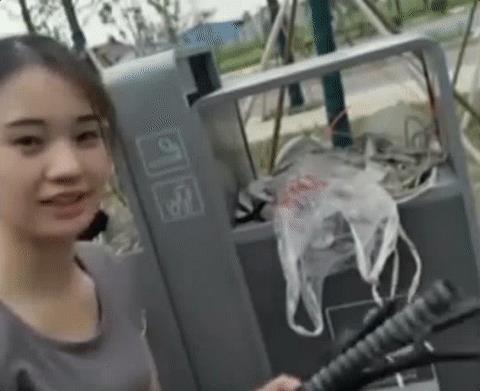 白皙甜美的外形站在垃圾处理厂里,脸上灿烂的笑容引起了不少网友的关注。