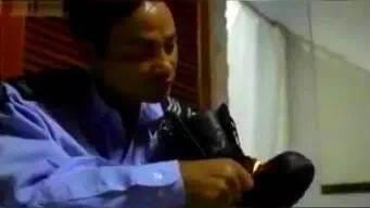 其实他这个镜头是自己坚持加进去的,因为父亲每次出警前,他都是这么为父亲擦皮鞋,父亲曾说过皮鞋对警察很重要。