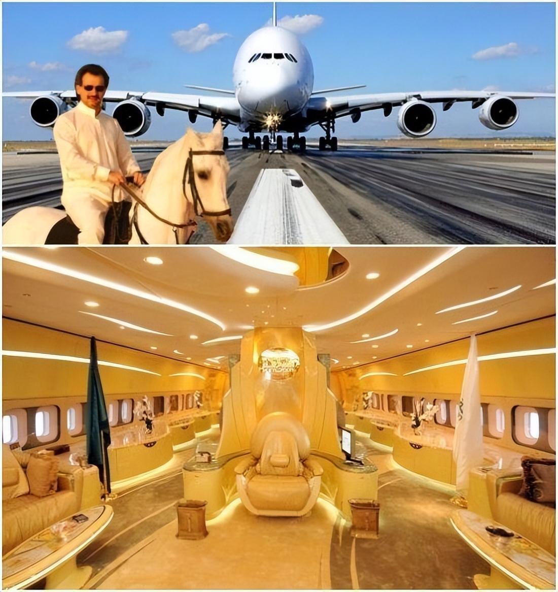 阿尔瓦利德富有高调,经常会炫耀他奢靡生活。他的私人飞机是在欧洲空客定制的A380,花费了4.85亿美元,据说光是飞机内部的设计和装修就花去3亿美元。飞机内奢华程度令人咋舌,简直就是一架金碧辉煌的“飞行宫殿”。
