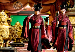 不久,光武帝大宴群臣,当着众大臣的面又让桓谭弹琴助兴。桓谭心里不愿意,又不敢违逆皇上的意思,看到宋弘怒气冲冲地盯着自己,心里发怵,弹得琴也断断续续的。