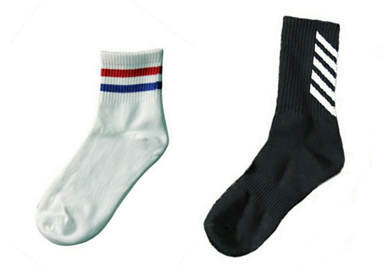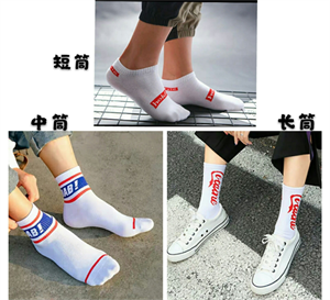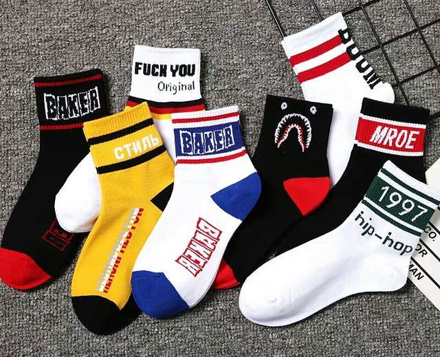 当然,除了以上这些搭配途径之外,咱们想显得更时尚,显得更潮一些,同样可以借助袜子来搭配。这时候优先选择显个性的袜子设计款式,比如当下比较潮的文字印花设计款式,吸睛的撞色拼接款式,个性的字母印花款式,别出心裁的品牌logo设计款式