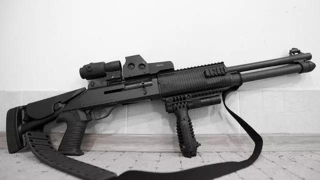 原名为“伯奈利M4 Super90霰弹枪”,由意大利伯奈利旗下研发,后来被美军采用,更名为“M1014”。该枪采用半自动击发模式,可以发射12号口径的霰弹,当中还包括铅弹、鹿弹、鸟弹、和燃烧弹等。机匣带有战术导轨,能根据战时情况,来安装不同型号的瞄准镜,下面还可安装垂直握把,便于更牢固地控制武器射击。目前该枪在“三角洲部队”中,扮演着近战突袭,和战术破门的角色,光是凭着半自动发射能力,就很受欢迎。