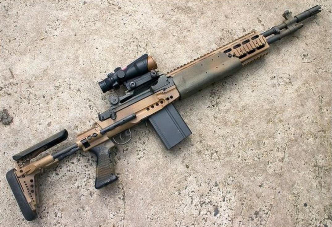 它继承了老式M14自动步枪的基础上改进,变成了精度更高的精确射手步枪,并成为特种兵最爱的枪械之一,外观有很大转变,机匣、枪托、和独立握把均为工程塑料,和部分金属,不再使用木质结构,整体重量更轻,并具备模块化设计,机匣四周均安装皮卡汀尼战术导轨,可以为枪身扩展更多功能配件,正常情况下,会配合4倍光学瞄准镜使用。它发射7.62x51mm北约全威力弹药,使用15发或20发弹匣供弹,别看它是精确射手步枪,除了半自动射击功能外,还保留了传统M14的全自动射击能力,不过士兵很少使用这个功能,因为后坐力大不易操控,远距离上基本没有精度,还浪费弹药。MK14EBR一直以来,都是“三角洲部队”的精确射手步枪之一。