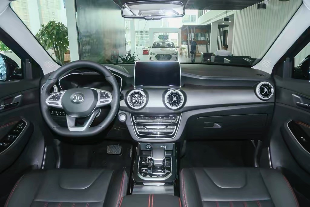 内饰方面:北京EX5内饰营造出偏向于豪华的设计风格,车内采用镀铬饰板进行装饰,整个内饰配色以黑色为主,空调出风口有几分奔驰的味道。