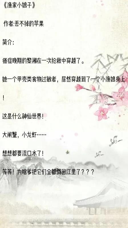 《渔家小娘子》平平淡淡的美食种田文,这本文的美食描写不错,在美食文里至少处于及格线上。大家一起把日子过得红红火火,很有干劲。整体很不错,推荐!