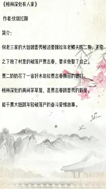 《桃林深处有人家》看主角种地,慢慢攒家底还是挺有意思的,写的总体来讲比较琐碎,家长里短,很有人间烟火的味道。