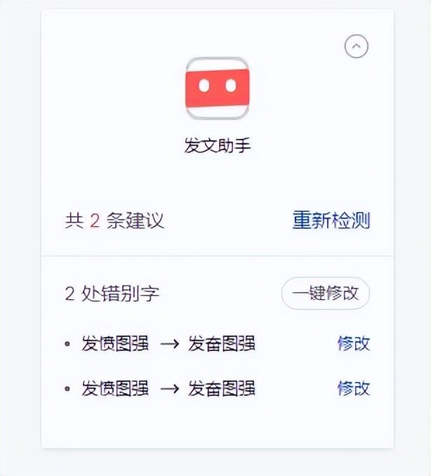 更有意思的事情来了哈,当我把我写的文字复制过来,发文助手竟然提醒我有两个错别字: