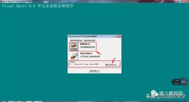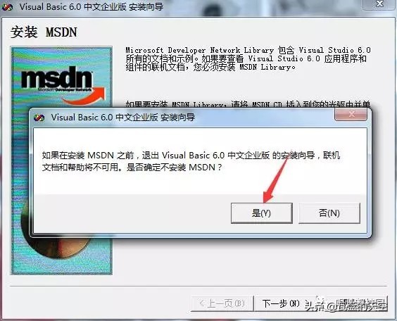 14.选择典型安装,默认安装在C盘(建议安装在除C盘以外的磁盘上,可在D盘或其它盘上新建文件夹VB6.0或者直接将C改成D),然后再点击“是”