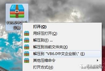 1.鼠标右击软件压缩包,选择“解压到VB6.0中文企业版”